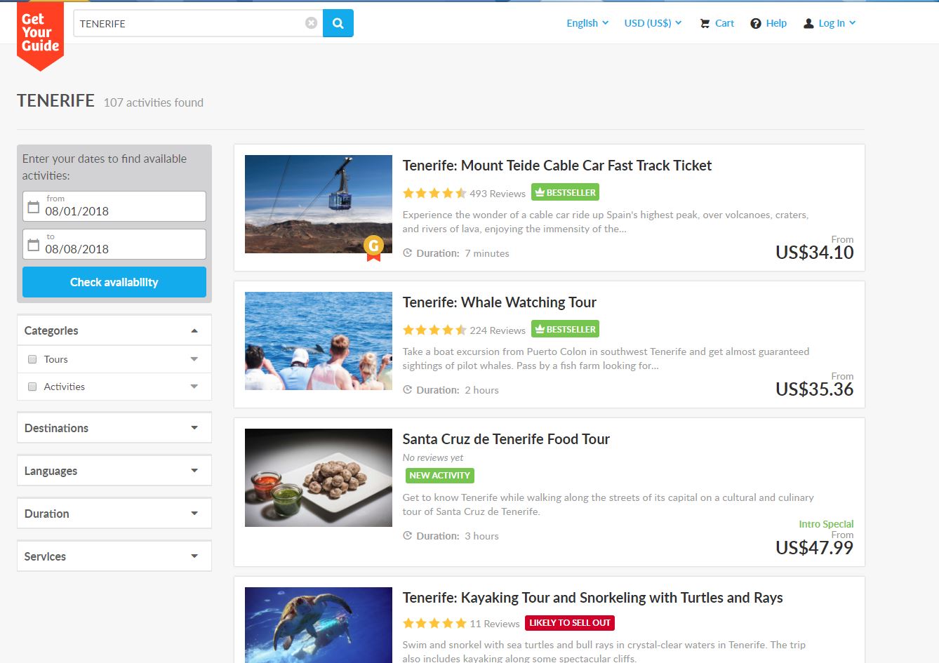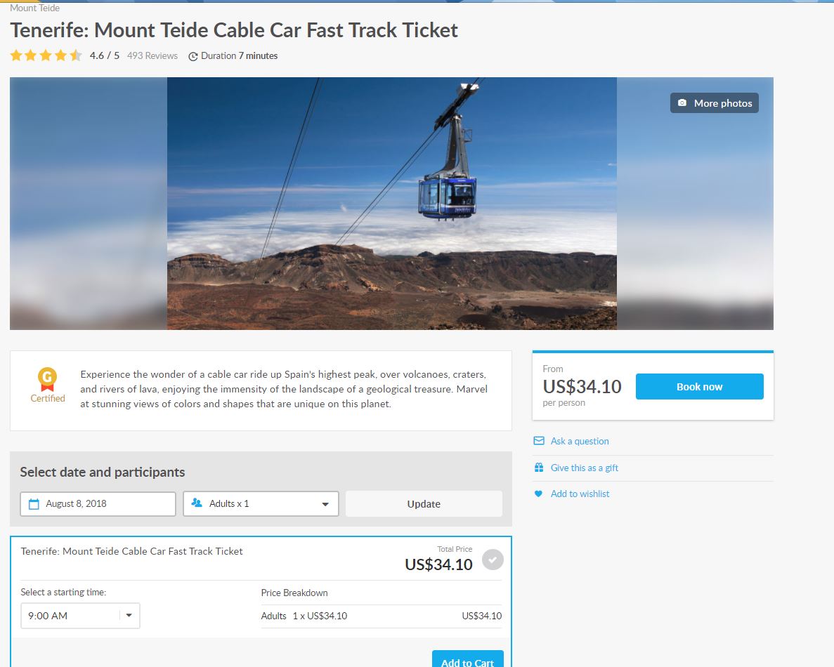 לדוגמא בחרתי בכרטיס לרכבל להר הגעש טיידה.