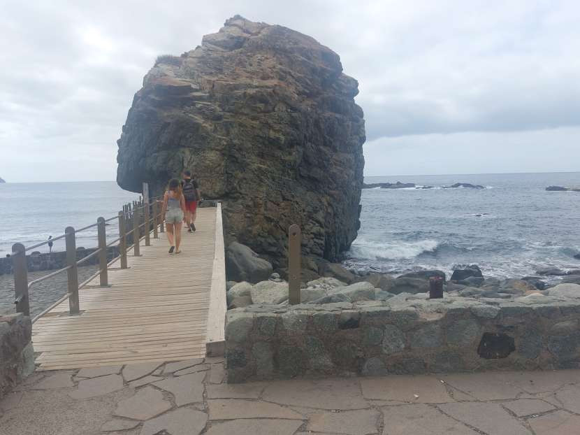 משם נסענו כחצי שעה פלוס לצד השני ממול – לכפר הדייגים Taganana ולהציץ בחוף: Roque de las Bodegas. הכפר עצמו לא הוא האטרקציה אלא הדרך ההררית אליו שעוברת בכל מיני גבהים מעל האוקינוס – דרך מדהימה ביופיה. גם החוף עצמו- יפיפה למקסימום- צוקי בזלת, חוף שחור ונוף פראי. לא נכנסנו אליו למים אבל ניתן לטייל בו ולהתרשם מהצוקים הגדולים שמתפרצים מכל מקום. יש שם סלע עצום שעוברים דרכו, ומוסיפים לאוסף התמונות עוד כמה לדרך.