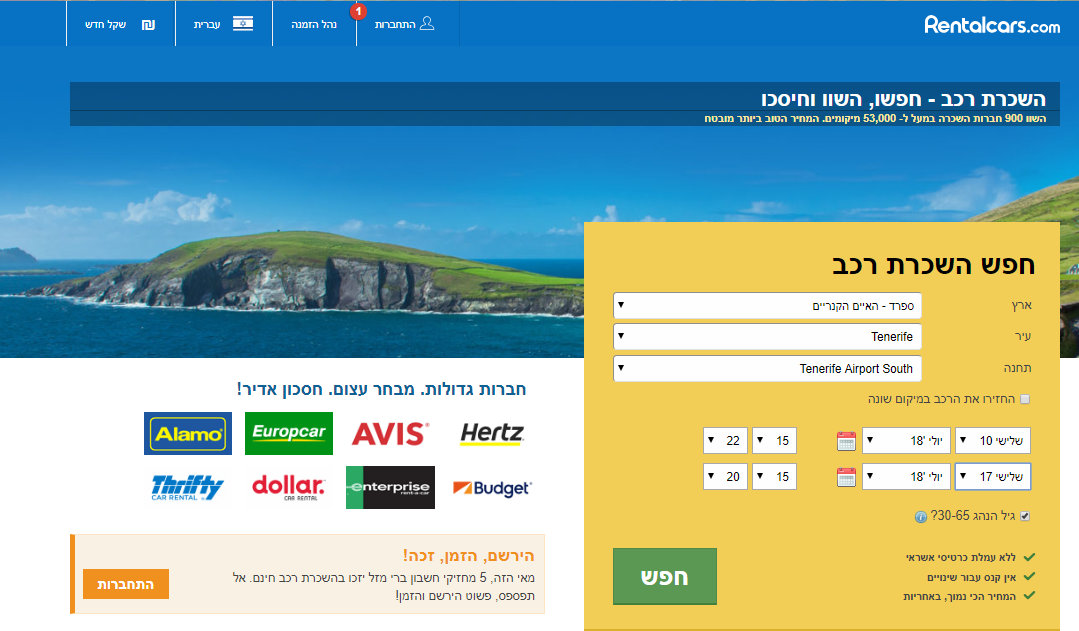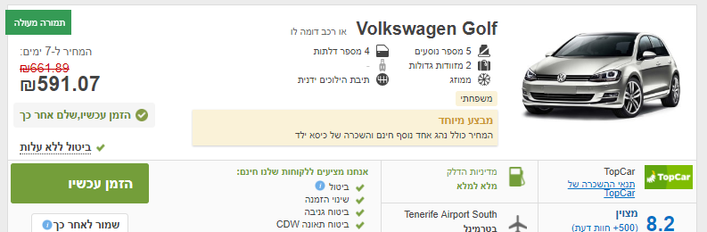 *שווה לשים לב למבצעים השונים שיש, במקרה הזה יש אפשרות להשכרת כסא ילד וגם נהג נוסף בחינם.