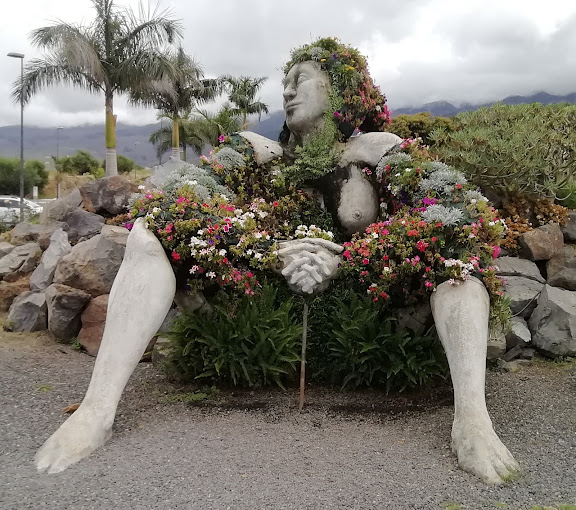 פארק עם פסל של בן אדם(חצי עירום) בשילוב צמחיה (Social La Quinta Garden) משגעת בצפון טנריף!